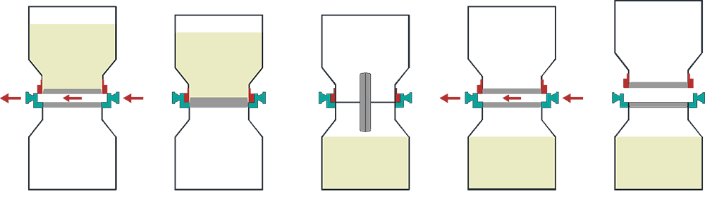 Die αβ-Ventiltechnologie bietet die Möglichkeit, Pulvermaterialien auf geschlossene Weise von einem Gerät zu einem anderen zu übertragen, wodurch die Exposition hochaktiver steriler Pulver gegenüber der äußeren Umgebung während des Transfervorgangs minimiert wird, eine Schutzbarriere zwischen Bedienern und zu verarbeitenden Materialien entsteht und außerdem die sterile Umgebung der Materialien geschützt wird.